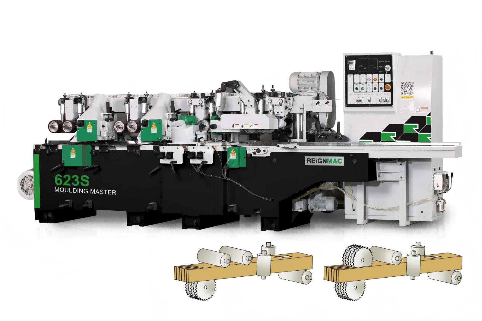 RMD+RMD+RMD double end tenoner + double end tenoner +double end tenoner production line is suitable to work decorated laminates, furniture products from sizing or profiling—middle sawing—sizing or profiling, disposable a large piece of board into two or more pieces of continuous processing.We can according to your needs to design a different combination of wiring program.