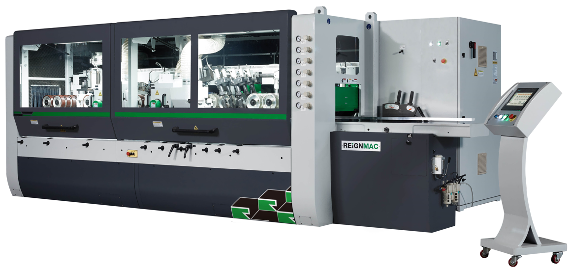 REIGNMAC Woodwoking‘s RMM623MH high-speed four sided planer will showcase its beautiful processing effect at a feeding speed of 80 meters on site. The MH series high-speed 4 side moulder adopts Siemens control system, equipped with automatic online sharpening function, easy and simple operation, showing you the excellent quality of efficient processing.