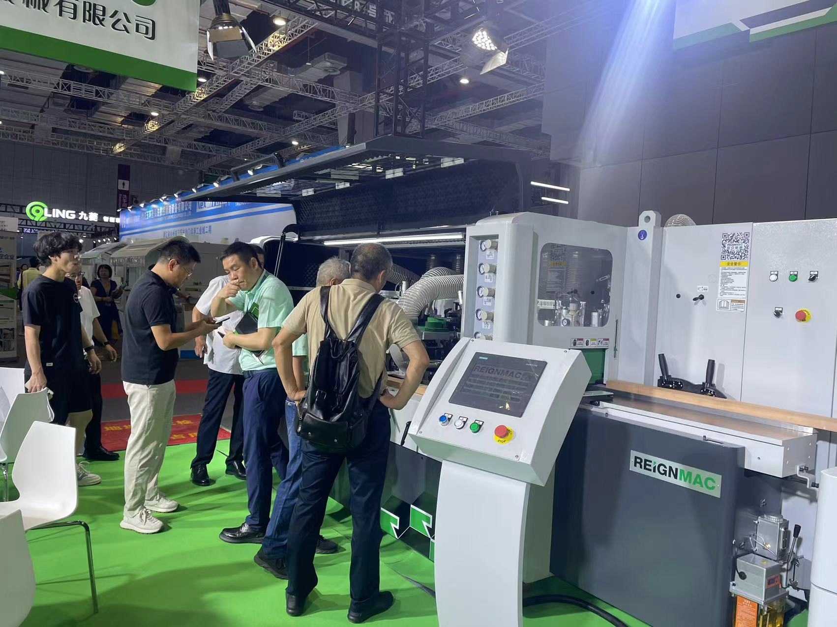 In this exhibition, REIGNMAC Woodworking Machinery exhibited 80m/min high-speed four-side moulder, new high-precision double-end milling machine and heavy-duty four side planer, which attracted many customers to stay and negotiate. Let us review the wonderful moments of this exhibition: