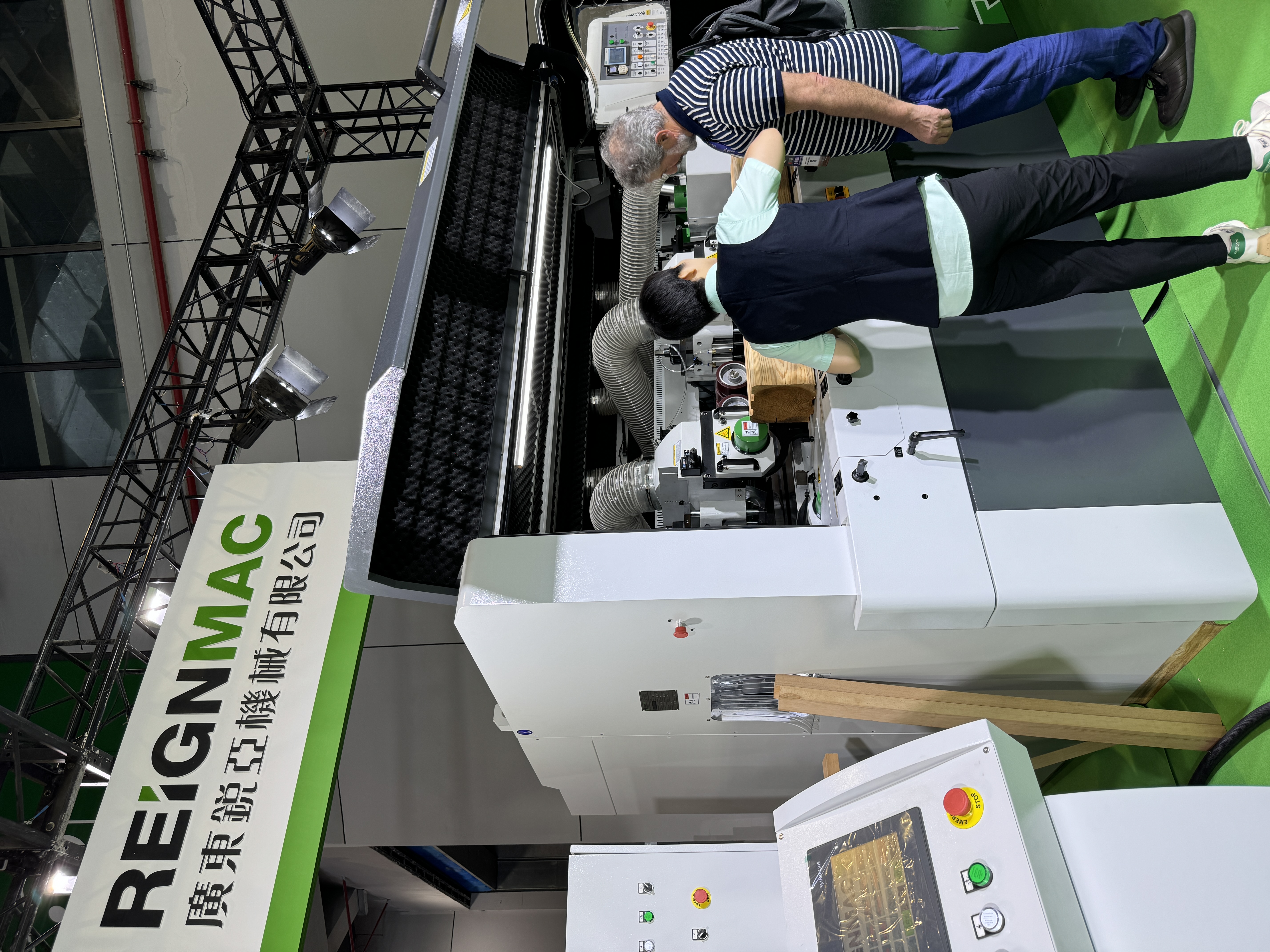 REIGNMAC's 80-meter high-speed four side moulder has been successfully launched, attracting many domestic and foreign audiences to come and learn about it. The processing effect demonstrated on site has received unanimous praise, and they have expressed their recognition of the high-quality four-sided high-speed processing solution and the higher-precision four-side processing solution.