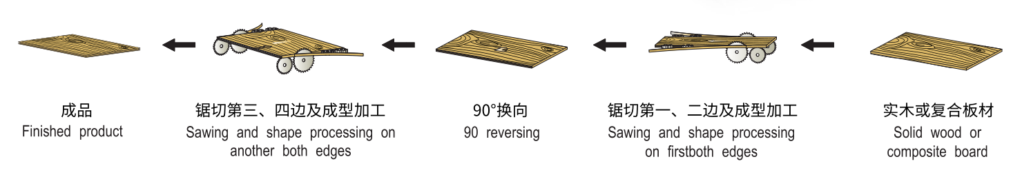 RMD+RMD double end tenoner + double end tenoner production line is suitable to work the continuous process for trimming, sizing profiles on four sides of panel workpieces such as solid wood or composites wooden door, fire door, cabinet door, furniture table, to complete the process at one time. We can according to your needs to design a different combination of wiring program.